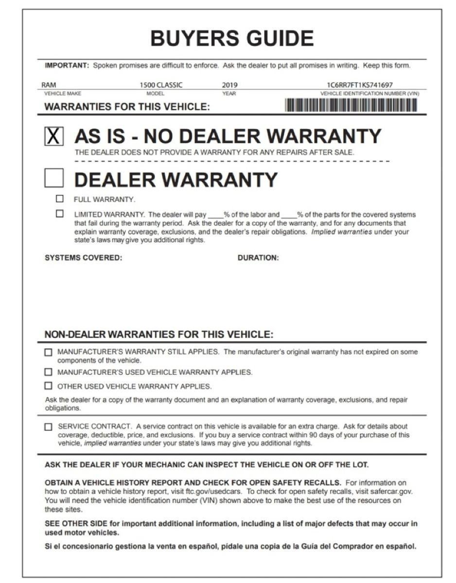 2019Ram1500 Classic At home in the country and in the city, this 2019 4WD Ram 1500 Classic Tradesman has been wonderfully refined to handle any occasion. Smooth steering, superior acceleration and a supple ride are just a few of its qualities. There is no reason why you shouldn't buy this Ram 1500 Classic Tradesman. It is incomparable for the price and quality. The quintessential Ram -- This Ram 1500 Classic Tradesman speaks volumes about its owner, about uncompromising individuality, a passion for driving and standards far above the ordinary. Just what you've been looking for. With quality in mind, this vehicle is the perfect addition to take home.