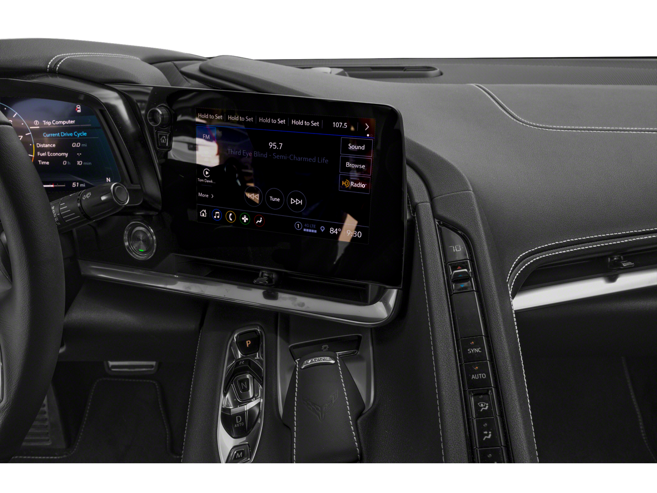 - Dark finish aluminum trim on speaker grilles, air vents, and console trim plate