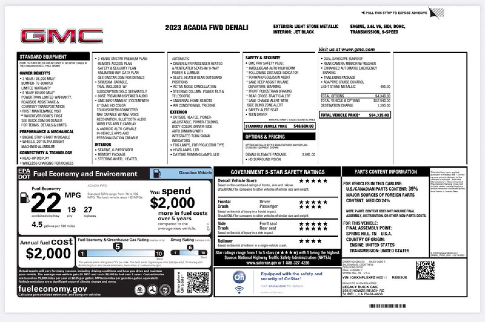 This outstanding example of a 2023 GMC Acadia Denali is offered by Legacy Buick GMC. Gone are the days of SUVs being the size of a tank and handling like one. This GMC Acadia is a perfect example of how SUVs have evolved into vehicles that are as refined as they are rugged. You deserve a vehicle designed for higher expectations. This GMC Acadia Denali delivers with a luxurious, well-appointed interior and world-class engineering. It's not a misprint. And the odometer isn't broken. This is a very low mileage GMC Acadia. A rare find these days. The 2023 GMC exterior is finished in a breathtaking Light Stone Metallic, while being complemented by such a gorgeous Jet Black interior. This color combination is stunning and absolutely beautiful!